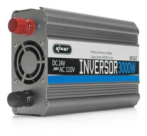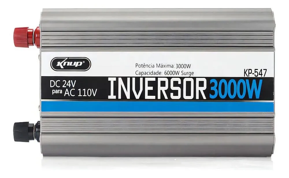 O Inversor Conversor de Tensão Veicular Knup KP-547 é desenvolvido para transformar a energia de sistemas 24V em corrente contínua em 110V em corrente alternada, permitindo a utilização de aparelhos elétricos em veículos e ambientes móveis.